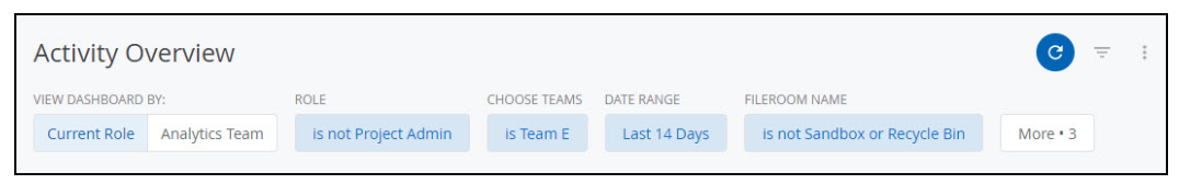 InformationBody分析 “分析”选项卡提供了详细的项目活动报告,并包含各种客制化的数据选项。数据每小时会更新/刷新几次。信息会通过一系列仪表板进行分类,并根据左侧导航窗格中的功能进行分组类别和仪表板包括:我的分析 创建仪表板- 创建自定义仪表板,包括您最感兴趣的指标;在此仪表板中点击 “开始” 以开始创建流程当您创建了自定义仪表板后,可以随时根据需要对其进行重命名或编辑访问权限。只需在您的自定义仪表板中,点击重命名仪表板或编辑访问权限便可作为多个项目的管理员,您也可以将自定义仪表板导入其他项目 - 请参阅导入仪表板 (Import a Dashboard) 审阅人活动 - 查看您的项目的审阅人在做什么 活动概览* 文档互动* 登录记录 Q&A 数据室活动审计 - 查看您的管理团队正在做什么 文档修订记录* 权限历史记录 权限查看 密文修订 * 这些仪表板可以使用角色或分析团队作为基本标准进行显示。筛选条件 ——所有仪表板的过滤器都会显示在每个仪表板的顶部。常用的过滤器会水平显示在仪表板顶部,而不太常用的过滤器显示在“More”按钮后面。 筛选条件的设置会被自动保留。当您重新访问仪表板时,系统将保留您最后设置的筛选条件 Reload – 选择过滤器后,点击“Reload”按钮 以更新过滤器。Display/Hide- 你可以通过选择倒金字塔图标 隐藏或显示过滤器。 每个仪表板都提供可视化报告和表格报告。仪表板功能: 提供深化数据的能力;许多元素可以根据用户偏好进行过滤、分割或隔离数据导出悬停工具提示 点击位于任何仪表板右上角的选项菜单图标,然后选择“Schedule delivery”,或点击任何仪表板上方的“定时发送电子邮件”(Schedule Emails)的按钮,便可将仪表板的 pdf ,图像或Excel 报表通过电子邮件发送给任何一组需要的收件人(电子邮件不包含副本列表,因此收件人将不会知道其他其他收件人信息)。仪表板电子邮件也可以安排在指定的时间自动发送。 如需在指定的时间,自动发送仪表板报告 在左侧导航窗格中,选择所需的仪表板。点击仪表板右上角的选项菜单图标,选择Schedule delivery。或点击任何仪表板上方的“定时发送电子邮件”(Schedule Emails)按钮。选择重复范围和时间。如果您只想发送一个仪表板(而不是定期更新),请选择立即发送。此外,建议在此步骤中展开 Advanced options 并选择所需的时区。输入收件人电子邮件地址(副本列表将不会显示)。选择格式 (Format)。点击保存 (Save)。 如需查看计划的电子邮件列表,请点击“查看所有计划”。这会显示所有分析仪表板中的计划电子邮件,并且可以通过点击“计划”提交新的计划电子邮件。您可通过选择相关的选项菜单以编辑、复制或删除预定计划。只有计划的创建者可以编辑已保存的计划。文件和文件夹标题链接行为文件 、内容和权限报告中的文件和文件夹标题是以以下方式链接: 点击文件链接可在单独的文件 查看器中打开文件点击文件夹链接会将用户带到“文档”选项卡,文件夹内容将显示在主面板中当有“分析”权限的审阅人尝试打开他们无权查看的文件时,会收到错误信息当管理员和有“分析”权限的审阅人尝试打开“仅可下载”文件、回收站中的文件或已删除文件,会收到错误信息 活动概览您可根据需要更改显示在仪表板顶部的过滤器。过滤器适用于可视化显示及其相关的可下载报告。选择过滤器时,请记得点击Reload以更新过滤器(当默认选择被改变时,按钮变成蓝色)。过滤器包括: 按以下方式查看仪表板(View Dashboard by): - 选择角色(Role)或分析团队 (Analytic Teams)角色 (Role) - 选择角色的任何组合选择团队(Analytic Teams) - 选择团队的任何组合日期范围(Date Range) - 使用预设选项或选择自定义来定义特定日期范围文件库名称 (Fileroom name) - 默认显示所有文件室的数据更多(More) 包括已停用的用户 (Include Deactivated Users) - 是或否文件夹名称(Folder Name)用户邮箱(User Email) 可视化展示包括: 登录活动 (Login Activity) - 查看指定时间段内的登录趋势审阅人活动排名 (Reviewer Activity Rank)- 根据角色或分析团队在项目中的参与情况提供排名。前 15 个文件夹 (Top 15 Folders) - 显示哪些文件夹得到审阅人的最多关注前 15 个搜索 (Top 15 Searches) - 显示项目中最常被搜索的15个术语前 15 个文件 (Top 15 Documents) - 显示哪些文件得到了审阅人的最多关注 所有可视化显示都包含可点击的元素,这些元素会以表格的形式展示精细数据。点击每个显示窗格中的选项菜单(3 个垂直点)以下载各种格式的相关数据。将鼠标悬停在视觉元素上以获取更多信息。文档互动您可根据需要更改显示在仪表板顶部的过滤器。过滤器适用于可视化显示及其相关的可下载报告。选择过滤器时,请记得点击Reload以更新过滤器(当默认选择被改变时,按钮变成蓝色)。过滤器包括: 按以下方式查看仪表板(View Dashboard by)- 选择角色(Role)或分析团队 (Analytic Teams)角色 (Role) - 选择角色的任何组合选择团队(Analytic Teams) - 选择团队的任何组合日期范围(Date Range) - 使用预设选项或选择自定义来定义特定日期范围访问类型 (Access Type)- 批量下载 (Bulk Download)、下载 (Download)、打印 (Print)或查看(View)更多(More) 包括已停用的用户(Include Deactivated Users) - 是或否文件库名称 (Fileroom name) - 默认显示所有文件库的数据索引(Index) - 根据索引编号查看特